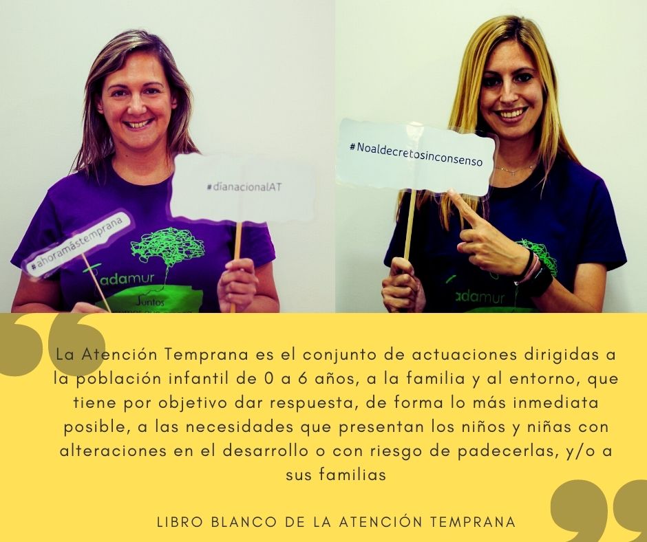 Porque tenemos claro que los principios que deben regir la Atención Temprana son la calidad, la gratuidad y la universalidad del servicio. Aprovechamos este día para recordar que nuestra intervención es crucial en el desarrollo de los niños y niñas que paceden un problema de desarrollo o que pueden estar en riesgo de paderlo. No olvidemos tampoco que la Atención Temprana es una inversión de futuro en materia socio-sanitaria y económica, además de que los beneficios repercuten no solo en el niño/niña, si no también en la familia, el entorno y la sociedad.