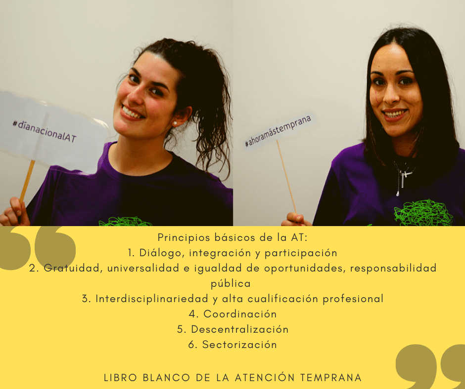 Porque tenemos claro que los principios que deben regir la Atención Temprana son la calidad, la gratuidad y la universalidad del servicio. Aprovechamos este día para recordar que nuestra intervención es crucial en el desarrollo de los niños y niñas que paceden un problema de desarrollo o que pueden estar en riesgo de paderlo. No olvidemos tampoco que la Atención Temprana es una inversión de futuro en materia socio-sanitaria y económica, además de que los beneficios repercuten no solo en el niño/niña, si no también en la familia, el entorno y la sociedad.